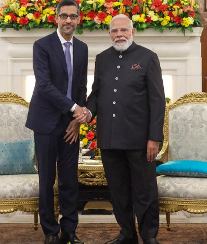 ਪ੍ਰਧਾਨ ਮੰਤਰੀ ਨਰਿੰਦਰ ਮੋਦੀ ਵਲੋਂ ਗੂਗਲ ਦੇ ਸੀ.ਈ.ਓ. ਸੁੰਦਰ ਪਿਚਾਈ ਨਾਲ ਮੁਲਾਕਾਤ