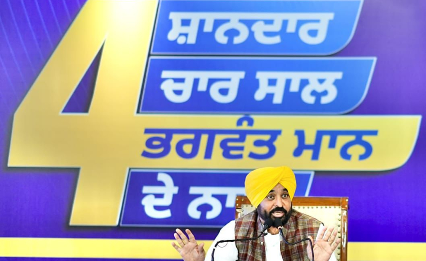 'ਆਪ' ਸਰਕਾਰ ਦੇ ਚਾਰ ਸਾਲ ਪੂਰੇ ਹੋਣ 'ਤੇ ਪੱਤਰਕਾਰਾਂ ਨਾਲ ਗੱਲਬਾਤ ਕਰਦਿਆਂ ਮੁੱਖ ਮੰਤਰੀ ਭਗਵੰਤ ਸਿੰਘ ਮਾਨ ਨੇ ਕਿਹਾ, "ਪੰਜਾਬ ਸਰਕਾਰ ਨੇ ਚਾਰ ਸਾਲਾਂ ਵਿੱਚ ਸਾਰੇ ਵਾਅਦੇ ਪੂਰੇ ਕਰਕੇ ਸਿਆਸਤ ਵਿੱਚ ਨਵੀਂ ਪ੍ਰਥਾ ਕਾਇਮ ਕੀਤੀ ਹੈ ਜਦੋਂ ਕਿ ਰਵਾਇਤੀ ਪਾਰਟੀਆਂ ਪੰਜ ਸਾਲਾਂ ਵਿੱਚ ਵੀ ਅਜਿਹਾ ਕਰਨ ਦੇ ਯੋਗ ਨਹੀਂ ਹਨ।" ਉਨ੍ਹਾਂ ਅੱਗੇ ਕਿਹਾ, “ਸਾਲ 2022 ਵਿੱਚ ਸ਼ਹੀਦ-ਏ-ਆਜ਼ਮ ਭਗਤ ਸਿੰਘ ਦੇ ਜੱਦੀ ਪਿੰਡ ਵਿਖੇ ਅਹੁਦਾ ਸੰਭਾਲਣ ਤੋਂ ਬਾਅਦ, ਪੰਜਾਬ ਸਰਕਾਰ ਨੇ ਕਈ ਲੋਕ-ਪੱਖੀ ਫੈਸਲੇ ਲਏ।” ਪੰਜਾਬ ਦੇ ਮੁੱਖ ਮੰਤਰੀ ਭਗਵੰਤ ਸਿੰਘ ਮਾਨ ਨੇ ਅੱਗੇ ਕਿਹਾ, “ਮੇਰੇ ਨਾਲ, ਲੱਖਾਂ ਪੰਜਾਬੀਆਂ ਨੇ ਸੂਬੇ ਦੀ ਪੁਰਾਤਨ ਸ਼ਾਨ ਨੂੰ ਬਹਾਲ ਕਰਨ ਦੀ ਸਹੁੰ ਚੁੱਕੀ ਸੀ।”