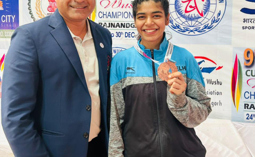 ਬੀਪੀਈਐਸ (ਬੈਚ 2025-26), ਪਹਿਲੇ ਸਮੈਸਟਰ ਦੇ ਵਿਦਿਆਰਥੀ ਹਿਮਾਂਸ਼ੂ ਨੇ ਰਾਸ਼ਟਰੀ ਪੱਧਰ ਦੀ ਚੈਂਪੀਅਨਸ਼ਿਪ ਵਿੱਚ ਕਾਂਸੀ ਦਾ ਤਗਮਾ ਜਿੱਤ ਕੇ ਅਸਾਧਾਰਨ ਹੁਨਰ, ਅਨੁਸ਼ਾਸਨ ਅਤੇ ਦ੍ਰਿੜਤਾ ਦਾ ਪ੍ਰਦਰਸ਼ਨ ਕੀਤਾ। ਉਸਦੀ ਪ੍ਰਾਪਤੀ ਵੁਸ਼ੂ ਖੇਡ ਪ੍ਰਤੀ ਉਸਦੀ ਸਖ਼ਤ ਸਿਖਲਾਈ ਅਤੇ ਸਮਰਪਣ ਦਾ ਪ੍ਰਮਾਣ ਹੈ।