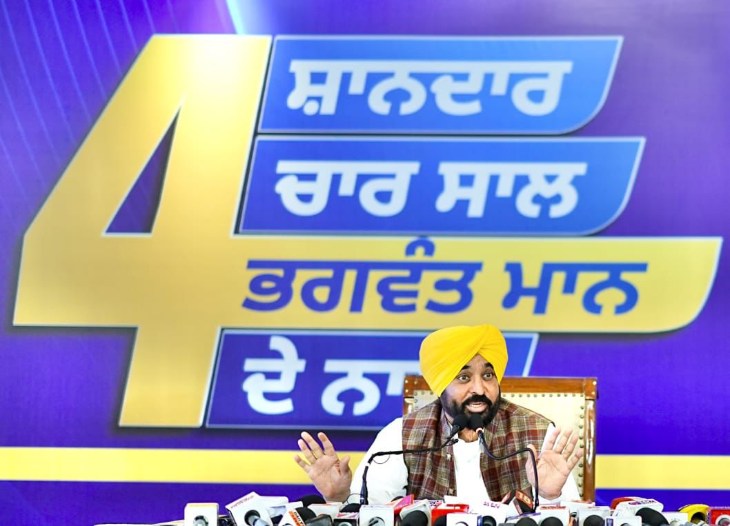 'ਆਪ' ਸਰਕਾਰ ਦੇ ਚਾਰ ਸਾਲ ਪੂਰੇ ਹੋਣ 'ਤੇ ਪੱਤਰਕਾਰਾਂ ਨਾਲ ਗੱਲਬਾਤ ਕਰਦਿਆਂ ਮੁੱਖ ਮੰਤਰੀ ਭਗਵੰਤ ਸਿੰਘ ਮਾਨ ਨੇ ਕਿਹਾ, "ਪੰਜਾਬ ਸਰਕਾਰ ਨੇ ਚਾਰ ਸਾਲਾਂ ਵਿੱਚ ਸਾਰੇ ਵਾਅਦੇ ਪੂਰੇ ਕਰਕੇ ਸਿਆਸਤ ਵਿੱਚ ਨਵੀਂ ਪ੍ਰਥਾ ਕਾਇਮ ਕੀਤੀ ਹੈ ਜਦੋਂ ਕਿ ਰਵਾਇਤੀ ਪਾਰਟੀਆਂ ਪੰਜ ਸਾਲਾਂ ਵਿੱਚ ਵੀ ਅਜਿਹਾ ਕਰਨ ਦੇ ਯੋਗ ਨਹੀਂ ਹਨ।" ਉਨ੍ਹਾਂ ਅੱਗੇ ਕਿਹਾ, “ਸਾਲ 2022 ਵਿੱਚ ਸ਼ਹੀਦ-ਏ-ਆਜ਼ਮ ਭਗਤ ਸਿੰਘ ਦੇ ਜੱਦੀ ਪਿੰਡ ਵਿਖੇ ਅਹੁਦਾ ਸੰਭਾਲਣ ਤੋਂ ਬਾਅਦ, ਪੰਜਾਬ ਸਰਕਾਰ ਨੇ ਕਈ ਲੋਕ-ਪੱਖੀ ਫੈਸਲੇ ਲਏ।” ਪੰਜਾਬ ਦੇ ਮੁੱਖ ਮੰਤਰੀ ਭਗਵੰਤ ਸਿੰਘ ਮਾਨ ਨੇ ਅੱਗੇ ਕਿਹਾ, “ਮੇਰੇ ਨਾਲ, ਲੱਖਾਂ ਪੰਜਾਬੀਆਂ ਨੇ ਸੂਬੇ ਦੀ ਪੁਰਾਤਨ ਸ਼ਾਨ ਨੂੰ ਬਹਾਲ ਕਰਨ ਦੀ ਸਹੁੰ ਚੁੱਕੀ ਸੀ।”