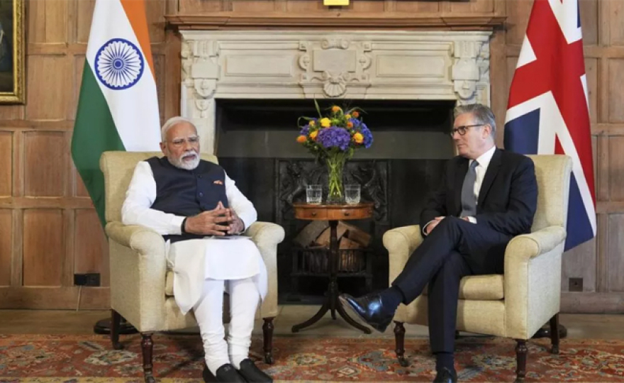 ਪ੍ਰਧਾਨ ਮੰਤਰੀ ਨਰਿੰਦਰ ਮੋਦੀ ਨੇ ਅੱਜ ਲੰਡਨ ਵਿਚ ਬਿ੍ਰਟਿਸ਼ ਪ੍ਰਧਾਨ ਮੰਤਰੀ ਕੀਰ ਸਟਾਰਮਰ ਨਾਲ ਮੁਲਾਕਾਤ ਕੀਤੀ ਹੈ। ਪ੍ਰਧਾਨ ਮੰਤਰੀ ਮੋਦੀ ਦੋ ਦਿਨਾਂ ਦੇ ਦੌਰੇ ’ਤੇ ਲੰਡਨ ਪਹੁੰਚੇ ਹੋਏ ਹਨ। ਇਸ ਦੌਰਾਨ ਅੱਜ ਦੋਵਾਂ ਆਗੂਆਂ ਦੀ ਮੌਜੂਦਗੀ ਵਿਚ ਭਾਰਤ ਅਤੇ ਬਿ੍ਰਟੇਨ ਵਿਚਕਾਰ ਮੁਕਤ ਵਪਾਰ ਸਮਝੌਤੇ ’ਤੇ ਦਸਤਖਤ ਕੀਤੇ ਗਏ ਹਨ। ਸਮਝੌਤੇ ਤੋਂ ਬਾਅਦ ਸਾਂਝੀ ਪ੍ਰੈਸ ਕਾਨਫਰੰਸ ਦੌਰਾਨ ਮੀਡੀਆ ਨੂੰ ਸੰਬੋਧਨ ਕਰਦੇ ਹੋਏ ਯੂ.ਕੇ. ਦੇ ਪ੍ਰਧਾਨ ਮੰਤਰੀ ਕੀਰ ਸਟਾਰਮਰ ਨੇ ਕਿਹਾ ਕਿ ਇਹ ਇਕ ਅਜਿਹਾ ਸੌਦਾ ਹੈ, ਜੋ ਦੋਵੇਂ ਦੇਸ਼ਾਂ ਨੂੰ ਵੱਡੇ ਲਾਭ ਦੇਵੇਗਾ। ਇਸੇ ਦੌਰਾਨ ਪ੍ਰਧਾਨ ਮੰਤਰੀ ਨਰਿੰਦਰ ਮੋਦੀ ਨੇ ਕਿਹਾ ਕਿ ਅੱਜ ਸਾਡੇ ਸਬੰਧਾਂ ਲਈ ਇਕ ਇਤਿਹਾਸਕ ਦਿਨ ਹੈ। ਉਨ੍ਹਾਂ ਕਿਹਾ ਕਿ ਕਈ ਸਾਲਾਂ ਦੀ ਮਿਹਨਤ ਤੋਂ ਬਾਅਦ ਅੱਜ ਦੋਵਾਂ ਦੇਸ਼ਾਂ ਨੇ ਵਿਆਪਕ ਆਰਥਿਕ ਅਤੇ ਵਪਾਰ ਸਮਝੌਤੇ ’ਤੇ ਦਸਤਖਤ ਕੀਤੇ ਹਨ।
