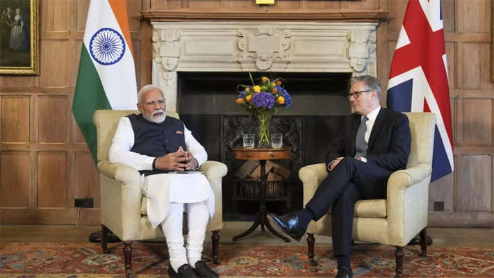 ਪ੍ਰਧਾਨ ਮੰਤਰੀ ਨਰਿੰਦਰ ਮੋਦੀ ਨੇ ਅੱਜ ਲੰਡਨ ਵਿਚ ਬਿ੍ਰਟਿਸ਼ ਪ੍ਰਧਾਨ ਮੰਤਰੀ ਕੀਰ ਸਟਾਰਮਰ ਨਾਲ ਮੁਲਾਕਾਤ ਕੀਤੀ ਹੈ। ਪ੍ਰਧਾਨ ਮੰਤਰੀ ਮੋਦੀ ਦੋ ਦਿਨਾਂ ਦੇ ਦੌਰੇ ’ਤੇ ਲੰਡਨ ਪਹੁੰਚੇ ਹੋਏ ਹਨ। ਇਸ ਦੌਰਾਨ ਅੱਜ ਦੋਵਾਂ ਆਗੂਆਂ ਦੀ ਮੌਜੂਦਗੀ ਵਿਚ ਭਾਰਤ ਅਤੇ ਬਿ੍ਰਟੇਨ ਵਿਚਕਾਰ ਮੁਕਤ ਵਪਾਰ ਸਮਝੌਤੇ ’ਤੇ ਦਸਤਖਤ ਕੀਤੇ ਗਏ ਹਨ। ਸਮਝੌਤੇ ਤੋਂ ਬਾਅਦ ਸਾਂਝੀ ਪ੍ਰੈਸ ਕਾਨਫਰੰਸ ਦੌਰਾਨ ਮੀਡੀਆ ਨੂੰ ਸੰਬੋਧਨ ਕਰਦੇ ਹੋਏ ਯੂ.ਕੇ. ਦੇ ਪ੍ਰਧਾਨ ਮੰਤਰੀ ਕੀਰ ਸਟਾਰਮਰ ਨੇ ਕਿਹਾ ਕਿ ਇਹ ਇਕ ਅਜਿਹਾ ਸੌਦਾ ਹੈ, ਜੋ ਦੋਵੇਂ ਦੇਸ਼ਾਂ ਨੂੰ ਵੱਡੇ ਲਾਭ ਦੇਵੇਗਾ। ਇਸੇ ਦੌਰਾਨ ਪ੍ਰਧਾਨ ਮੰਤਰੀ ਨਰਿੰਦਰ ਮੋਦੀ ਨੇ ਕਿਹਾ ਕਿ ਅੱਜ ਸਾਡੇ ਸਬੰਧਾਂ ਲਈ ਇਕ ਇਤਿਹਾਸਕ ਦਿਨ ਹੈ। ਉਨ੍ਹਾਂ ਕਿਹਾ ਕਿ ਕਈ ਸਾਲਾਂ ਦੀ ਮਿਹਨਤ ਤੋਂ ਬਾਅਦ ਅੱਜ ਦੋਵਾਂ ਦੇਸ਼ਾਂ ਨੇ ਵਿਆਪਕ ਆਰਥਿਕ ਅਤੇ ਵਪਾਰ ਸਮਝੌਤੇ ’ਤੇ ਦਸਤਖਤ ਕੀਤੇ ਹਨ।
