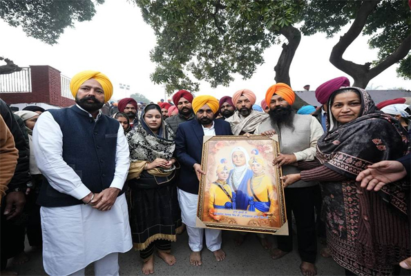 ਛੋਟੇ ਸਾਹਿਬਜ਼ਾਦਿਆਂ ਬਾਬਾ ਜ਼ੋਰਾਵਰ ਸਿੰਘ ਜੀ, ਬਾਬਾ ਫਤਹਿ ਸਿੰਘ ਜੀ ਅਤੇ ਮਾਤਾ ਗੁਜਰ ਕੌਰ ਜੀ ਦੀ ਲਾਸਾਨੀ ਸ਼ਹਾਦਤ ਨੂੰ ਸਮਰਪਿਤ ਸ਼ਹੀਦੀ ਸਭਾ ਦਾ ਅੱਜ ਦੂਜਾ ਦਿਨ ਹੈ। ਇਸ ਮੌਕੇ ਵੱਡੀ ਗਿਣਤੀ ’ਚ ਸੰਗਤ ਸ੍ਰੀ ਫਤਹਿਗੜ੍ਹ ਸਾਹਿਬ ਪਹੁੰਚੀ ਅਤੇ ਗੁਰਦੁਆਰਾ ਸ੍ਰੀ ਜੋਤੀ ਸਰੂਪ ਵਿਖੇ ਨਤਮਸਤਕ ਹੋਈ ਹੈ। ਇਸੇ ਦੌਰਾਨ ਪੰਜਾਬ ਦੇ ਮੁੱਖ ਮੰਤਰੀ ਭਗਵੰਤ ਮਾਨ ਵੀ ਆਪਣੇ ਪਰਿਵਾਰ ਸਮੇਤ ਗੁਰਦੁਆਰਾ ਸਾਹਿਬ ਪਹੁੰਚੇ ਅਤੇ ਗੁਰੂ ਚਰਨਾਂ ਵਿਚ ਮੱਥਾ ਟੇਕਿਆ ਅਤੇ ਨਾਨਕ ਨਾਮ ਲੇਵਾ ਸੰਗਤਾਂ ਦੇ ਦਰਸ਼ਨ ਕੀਤੇ। ਉਨ੍ਹਾਂ ਕਿਹਾ ਕਿ ਦਸ਼ਮੇਸ਼ ਪਿਤਾ ਸ੍ਰੀ ਗੁਰੂ ਗੋਬਿੰਦ ਸਿੰਘ ਜੀ ਦੇ ਛੋਟੇ ਸਾਹਿਬਜ਼ਾਦਿਆਂ ਬਾਬਾ ਜ਼ੋਰਾਵਰ ਸਿੰਘ ਜੀ, ਬਾਬਾ ਫਤਹਿ ਸਿੰਘ ਜੀ ਅਤੇ ਮਾਤਾ ਗੁਜਰ ਕੌਰ ਜੀ ਦੀ ਸ਼ਹਾਦਤ ਦੀ ਮਿਸਾਲ ਰਹਿੰਦੀ ਦੁਨੀਆ ਤੱਕ ਰਹੇਗੀ। ਉਨ੍ਹਾਂ ਦੇ ਦਿ੍ਰੜ੍ਹ ਇਰਾਦੇ ਅਤੇ ਜਜ਼ਬੇ ਰਹਿੰਦੀ ਦੁਨੀਆ ਤੱਕ ਸਾਡੀਆਂ ਪੀੜ੍ਹੀਆਂ ਨੂੰ ਪ੍ਰੇਰਿਤ ਕਰਦੇ ਰਹਿਣਗੇ। ਦੱਸਣਯੋਗ ਹੈ ਕਿ ਇਸ ਸ਼ਹੀਦੀ ਸਭਾ ਵਿਚ ਦੇਸ਼ ਅਤੇ ਵਿਦੇਸ਼ਾਂ ਵਿਚੋਂ ਬਹੁਤ ਵੱਡੀ ਗਿਣਤੀ ਵਿਚ ਸੰਗਤ ਪਹੁੰਚੀ ਹੋਈ ਹੈ।